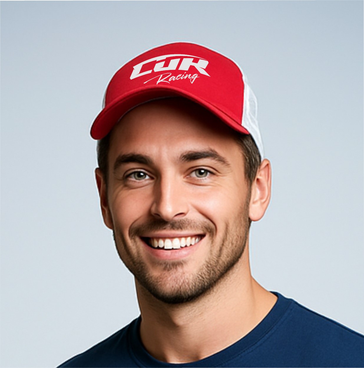 Casquette Racing Team rouge/jaune fluo – Idéal dans le paddock – Panneau avant et visière : 100% coton twill. 100% polyester maille filet.